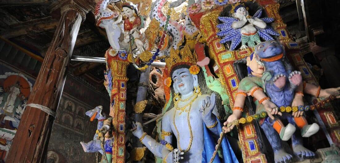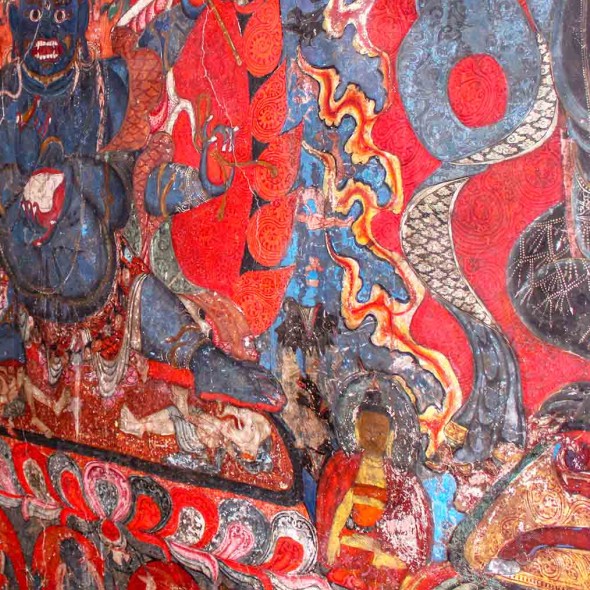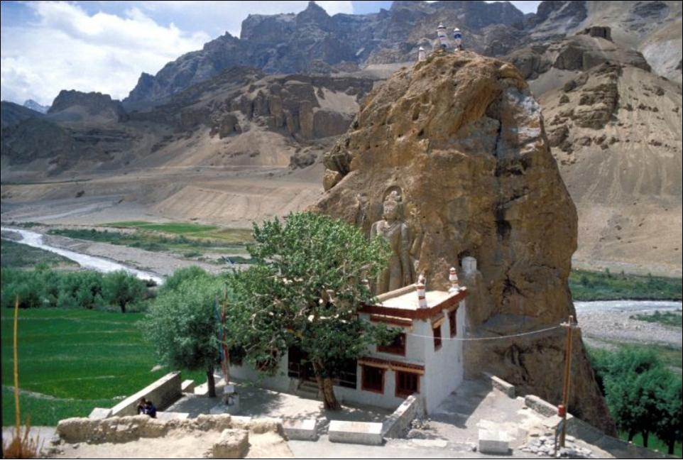 Sostiamo al vicino Gompa di Sani (vedi Guida on-line) e proseguiamo fino al ponte di Ating e da qui si segue la strada asfaltata lungo la riva meridionale del Doda imboccando la valle che porta a sud verso dell’Umasi La, dove sospeso ad una rupe si trova il piccolo monastero di Dzongkul (clicca qui per la guida on-line), che fu il principale luogo di ritiro dell’importante maestro mistico Naropā, uno dei maestri principali della tradizione Kagyupa e autore del famoso testo dei “sei yoga” che è tutt’ora una delle guide esoteriche utilizzate dagli yogi tibetani.