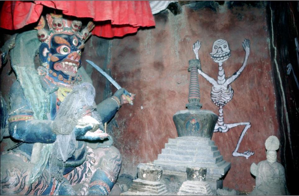 Nelle cappelle del piccolo complesso vi sarebbe anche una raffigurazione (peraltro rara) odi Dorje Phakmo (la Troia di Diamante) terza figura in ordine gerarchico dopo il Dalai lama ed il Panchen Lama, inoltre le usuali statue di Buddha, e una sala con un'icona di Avalokitesvara. Interessanti anche i murali.
