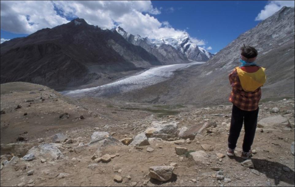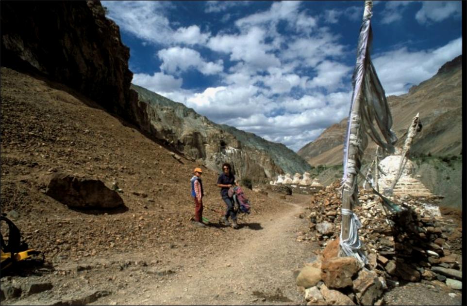 Eventuale breve sosta per una visita al piccolo gonpa del villaggio di Phe e si continua lungo la strada che si era utilizzata all’arrivo, valicando il Pensi La (4400 mt) (immagine a destra), abitato da miriadi di marmotte, dove la vista spazia sulle distese glaciali del ghiacciaio Durung Drung e con la vista dello Z3 (Cima Italia). Scendiamo nella piana di Rangdum, dove si trova un isolato monastero di Rangdum (vedi guida on-line) posto su un colle morenico al centro di una valle di inimmaginabile bellezza, con vaste pasture di yak coperte da milioni di stelle alpine.