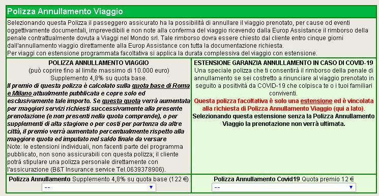 2. Assicurazione per ritiro causa covid19 tuo o di un parente o amico,attivabile solo con la (c).