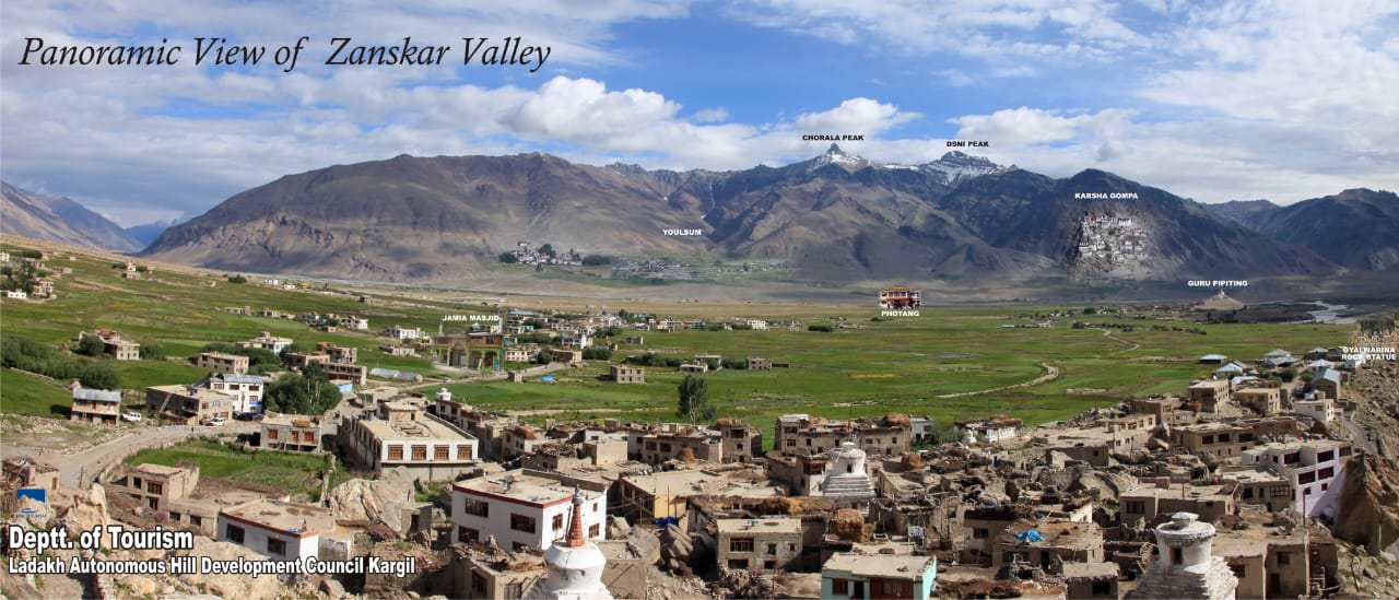 A 35 km da Padum, sulla strada per Leh, si trova l'antico castello restaurato, che si ritiene sia stato costruito nel X secolo da Ldey Tsug Gon, re dello Zanskar e figlio minore di Re Skildey Nimagon, discendente di Langdarma del Tibet. Il re costruì due palazzi, uno a Padum e uno a Zangla.